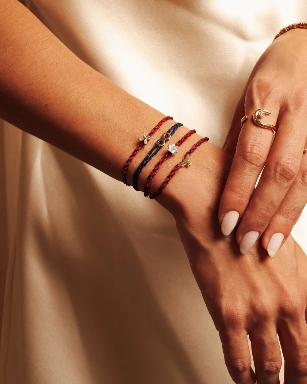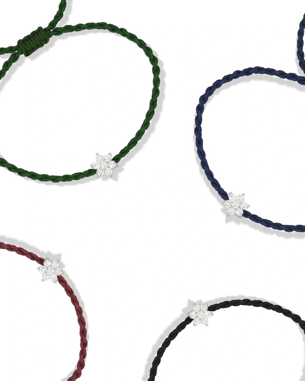 A Pulseira Trançada Flor Diamante é uma joia que une estilo, significado e cores vibrantes. Desenvolvida com fios trançados de seda, traz um visual moderno e cheio de personalidade. A pulseira é ajustável, garantindo um encaixe perfeito no pulso.