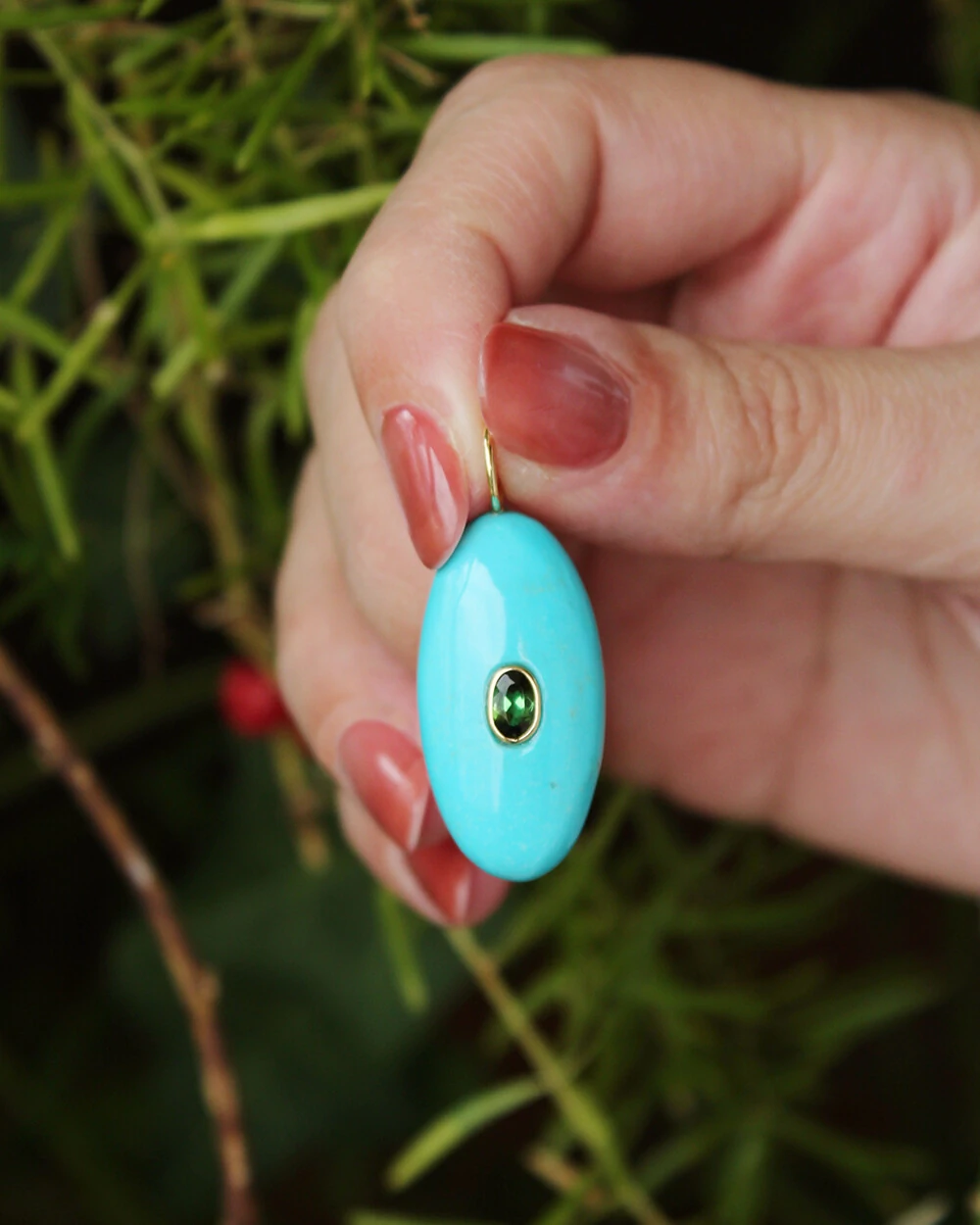 Uma peça versátil que une beleza, cor e sofisticação em um só detalhe. A joia combina cores vibrantes e energia única: a turquesa traz seu tom intenso e sereno, enquanto a turmalina verde adiciona frescor e leveza ao design.