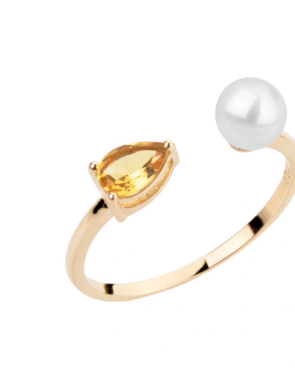 Elegante e moderno, o anel aberto pérola com berilo combina o orgânico com a sofisticação em um design contemporâneo e delicado.