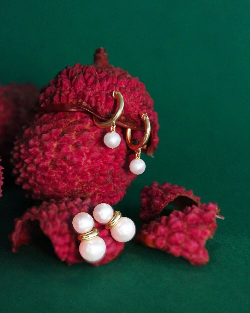 Moderno e delicado, o brinco apresenta duas pérolas naturais unidas por um elo central em ouro, criando um design que combina romantismo e sofisticação.