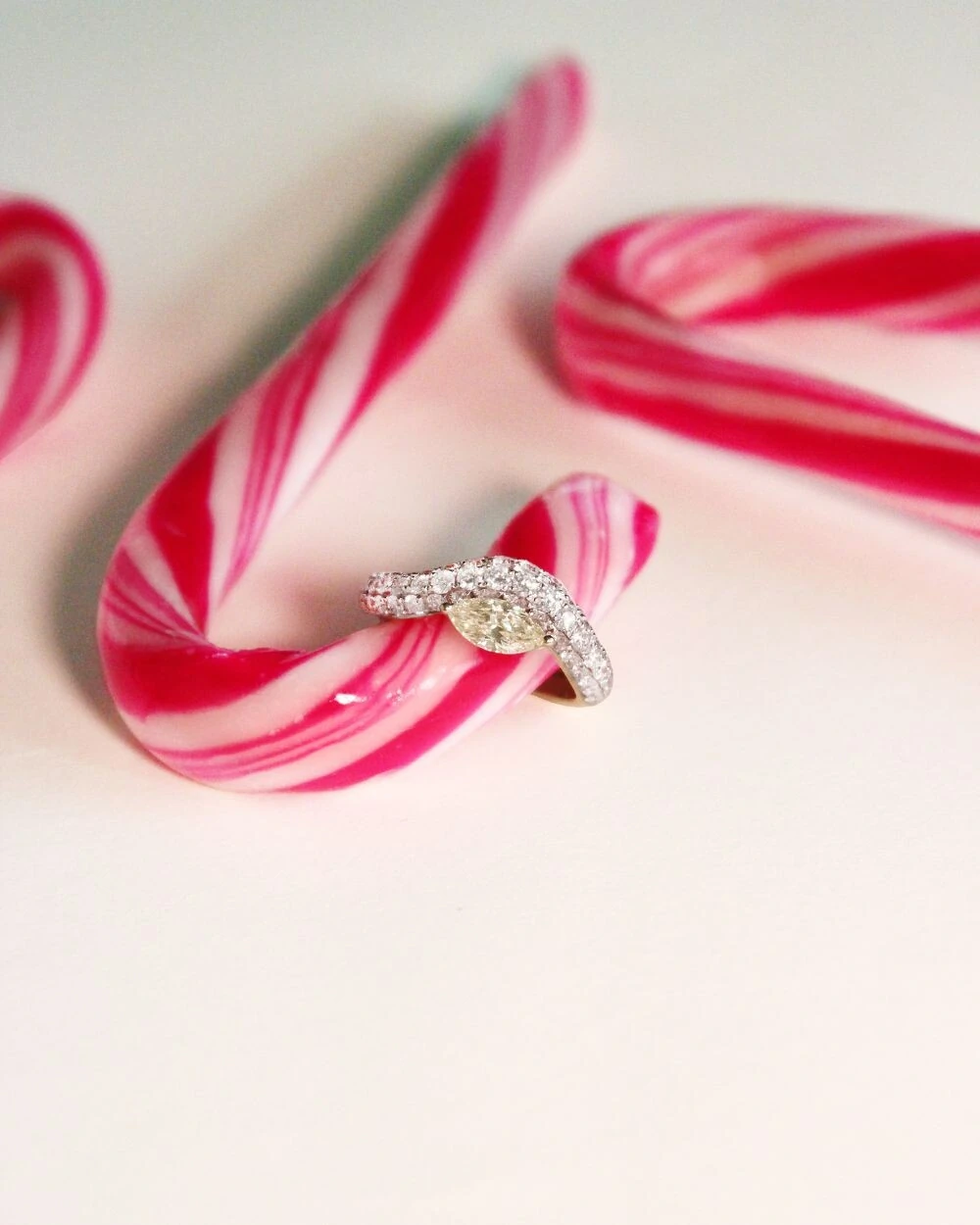 Anel Curvo Diamante Pavê, uma joia sofisticada que combina fluidez e brilho em um design contemporâneo.