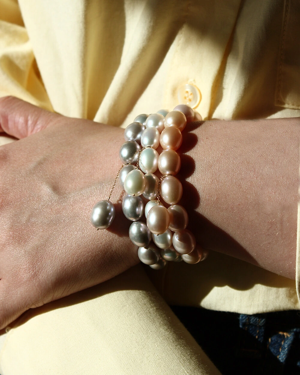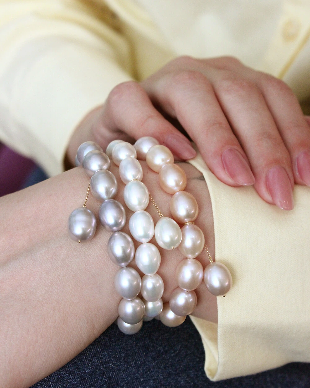 A pulseira de pérolas com pingente é um verdadeiro clássico atemporal. Suas pérolas em tom rosa apresentam um brilho sofisticado e romântico, revelando nuances suaves que realçam ainda mais sua elegância natural