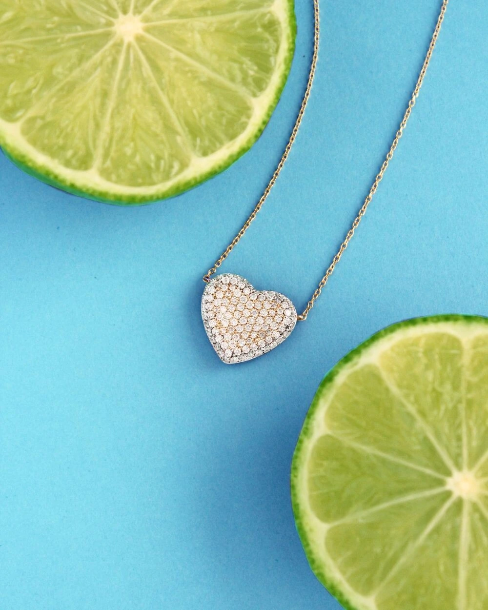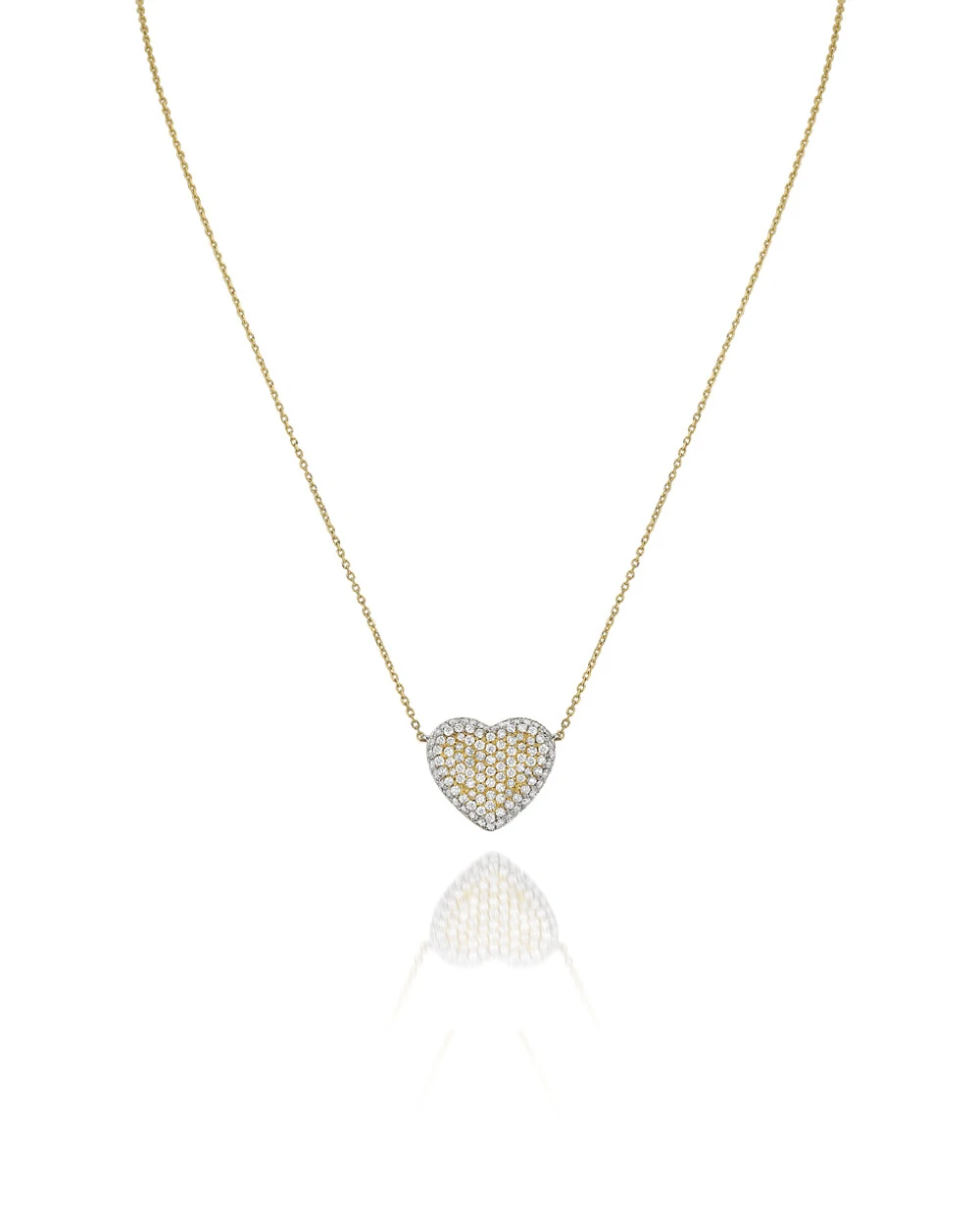 Colar em formato de coração com cravação pavê com diamantes, um clássico atemporal que combina brilho, delicadeza e sofisticação.