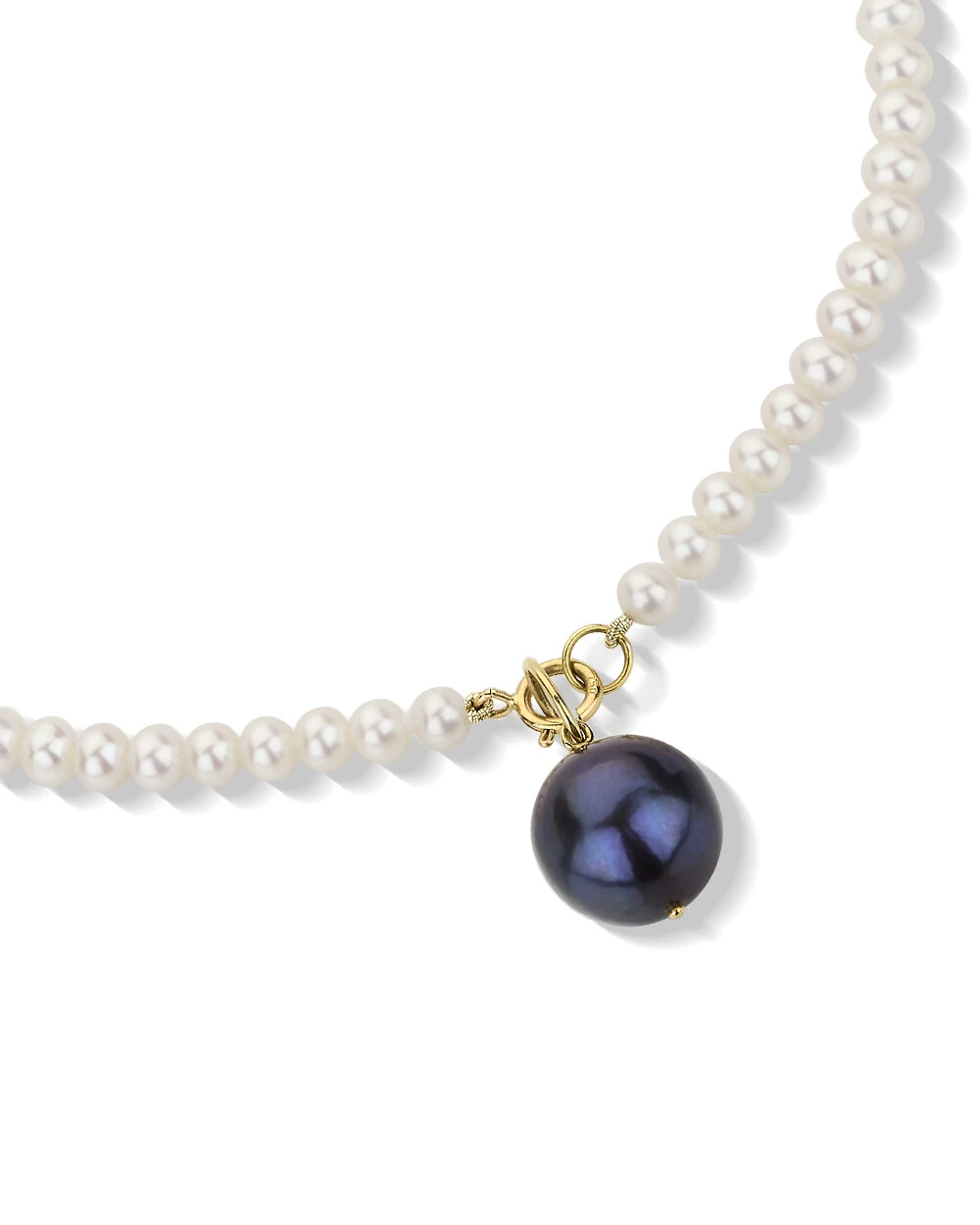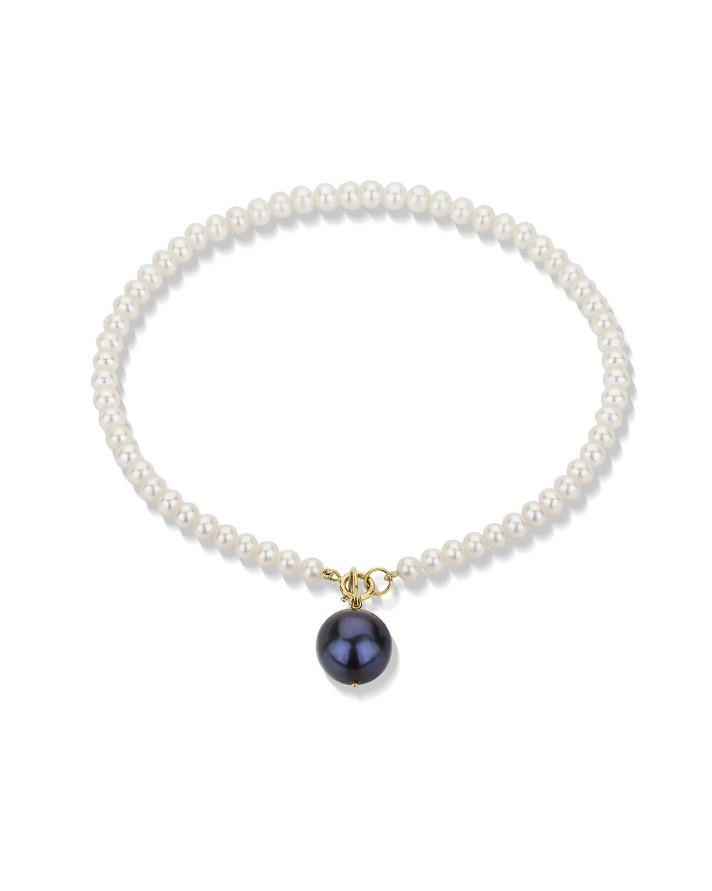 No centro, um delicado pingente de pérola negra cria um ponto de destaque sutil e marcante, trazendo profundidade e um toque contemporâneo à peça.