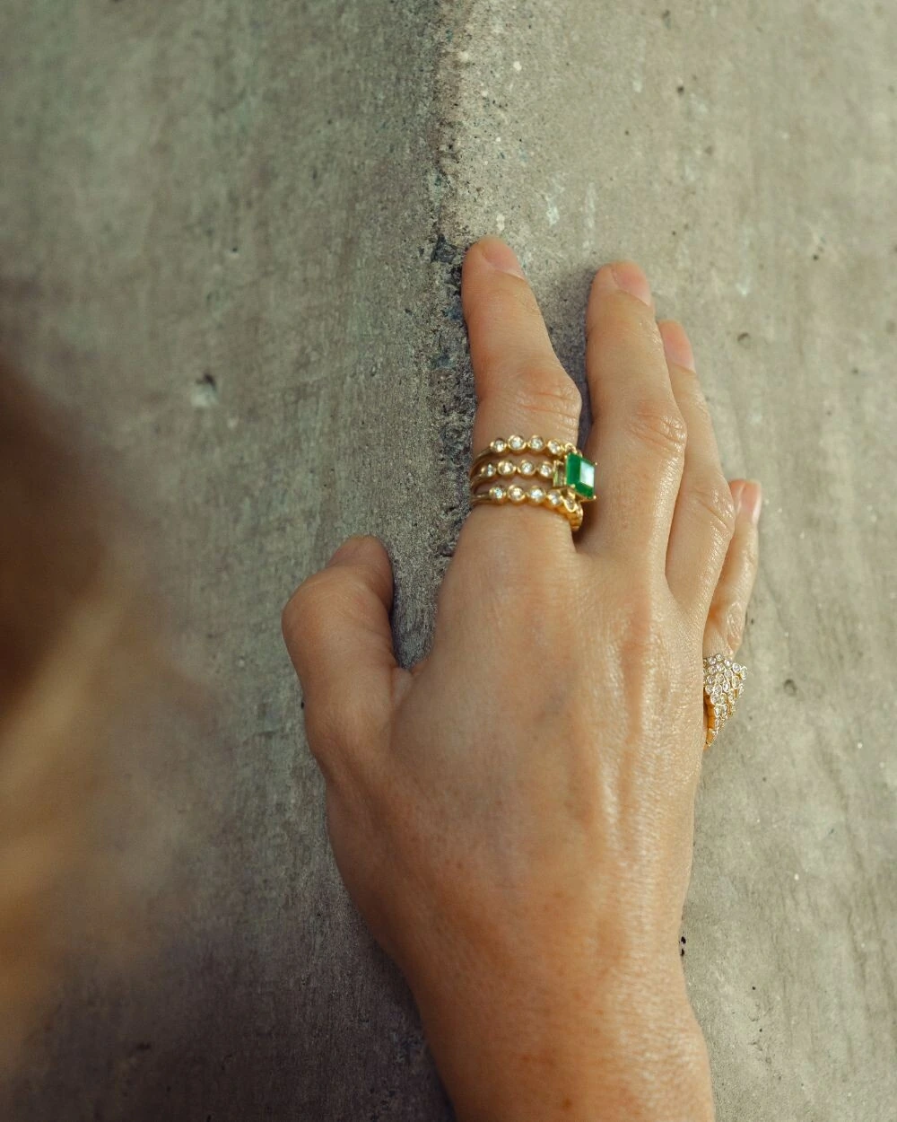 O Anel Duet Esmeralda e Diamante é uma joia que traduz sofisticação com um toque de cor e personalidade.