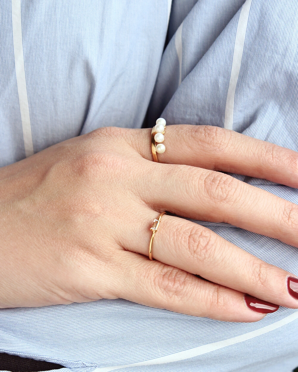 Versátil e refinado, o anel com pérolas é perfeito para momentos especiais, como celebrações e encontros marcantes, mas também para ser usado no dia a dia, trazendo graça e sofisticação para qualquer ocasião. Ele se destaca tanto usado sozinho quanto combinado com outras joias, compondo um visual leve, romântico e cheio de estilo.