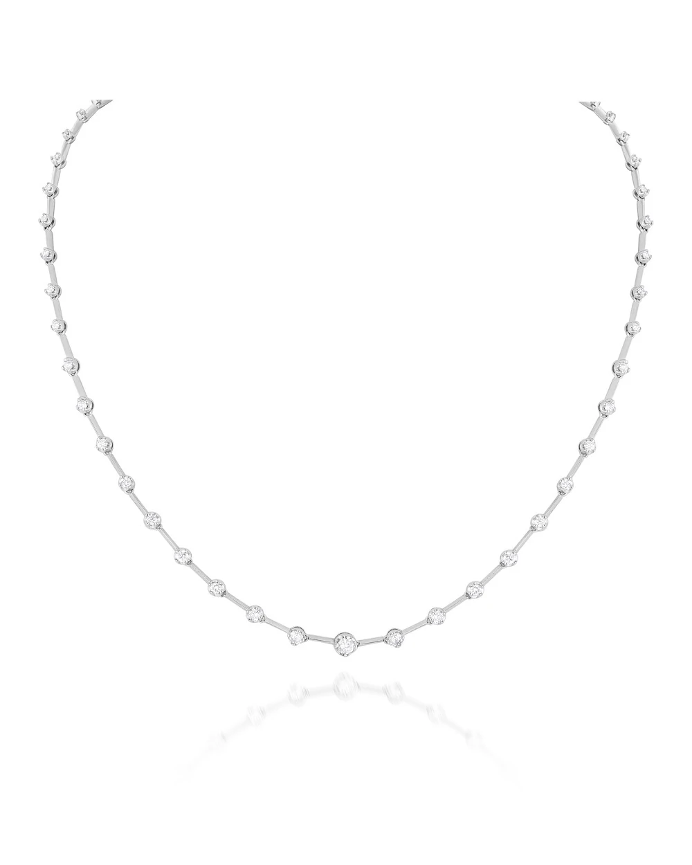 Colar degradê com diamantes feito em ouro branco 18k e adornado por diamantes que conferem um brilho sutil e sofisticado à peça. O desenho elegante valoriza o efeito gradual do degradê, criando movimento e leveza, enquanto o fio faca traz um acabamento moderno e refinado.