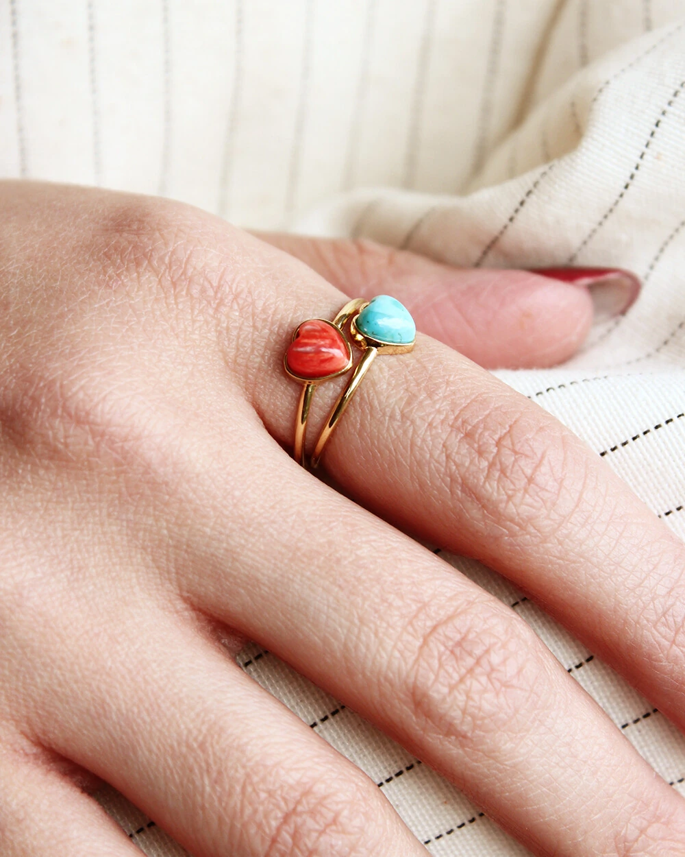 Delicado e cheio de charme, o anel coração madrepérola vermelha é uma joia em ouro amarelo 18K que une romantismo e leveza