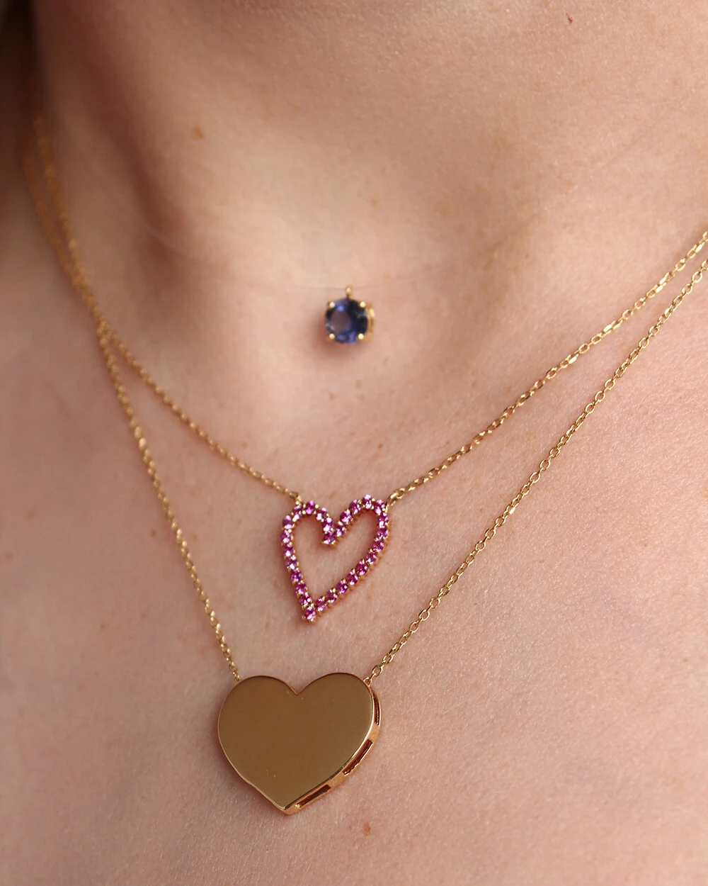 Colar Placa Coração desenvolvido em ouro, um clássico com toque romântico.